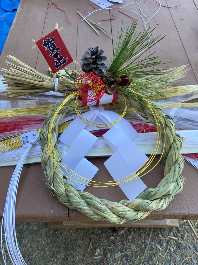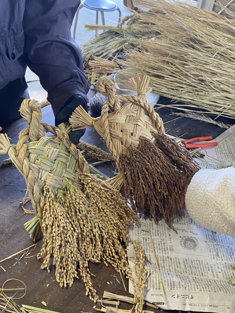 稲藁でしめ飾りを作る作業をしてみると気がつきました。こうやって制作する時間、行程そのものがとても大切だということ。新しい年を迎える準備の時間であり、お米を収穫できたことの感謝、家族、友人がいることのありがたさを感じる時間でした。思いもかけず、自分が古(いにしえ)から絆を大切にしていた日本人であること、再確認できました。