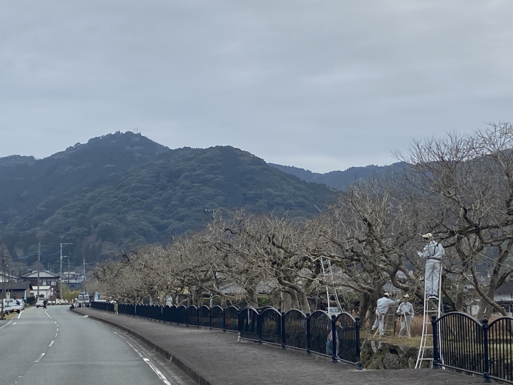 この美しい櫨並木が維持されているのは、地元の「はぜ保存会」の尽力があるからこそです。2025年2月15日、この日は剪定作業が行われるとのことで、現地を訪れました。筑水高校の生徒さん約20名も課題研究の一環として手伝いに参加していました。