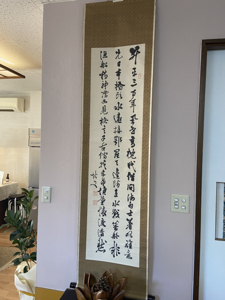松尾さんに「これ、必ず紹介して!」と言われたのは、この掛け軸。これ、教科書にも、お札にもなった人で、知らない人はいないだろう!という人の書とのこと。これ以上書くと、狙われるといけません。「そしじ」に行って松尾さんにぜひ、聞いてください。浅学の私では内容までは解読不能ですが、見るだけでも行く価値はあります。