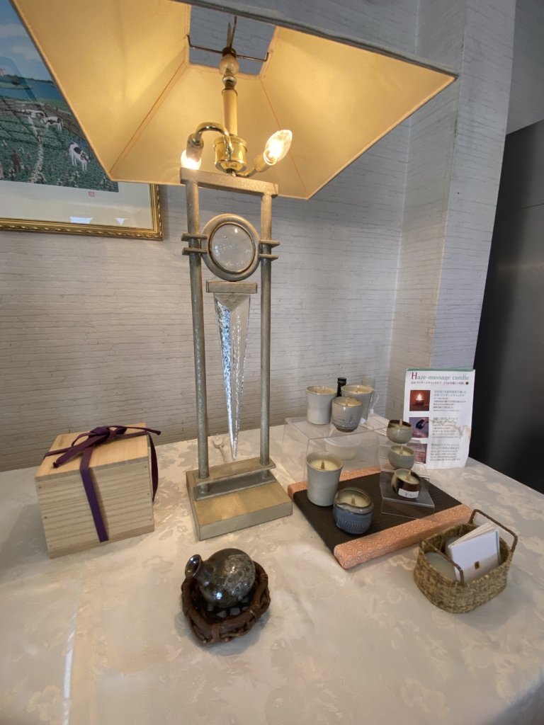 櫨ろうのマッサージキャンドルと、星野民芸の家具はその言葉にぴったりな雰囲気を醸し出しています。